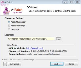 IMPORTANTE: a Microsoft decidiu desativar o MSN e substituí-lo pelo Skype. Seus contatos no Messenger serão transferidos automaticamente para o Skype após atualização. Saiba mais lendo o guia Tudo sobre a migração do MSN para o Skype.O A-Patch é um aplicativo que permite modificar o Windows Live Messenger que você tem instalado no computador de forma simples. Esta versão do A-Patch funciona com algumas versões do Windows Live Messenger 2009.